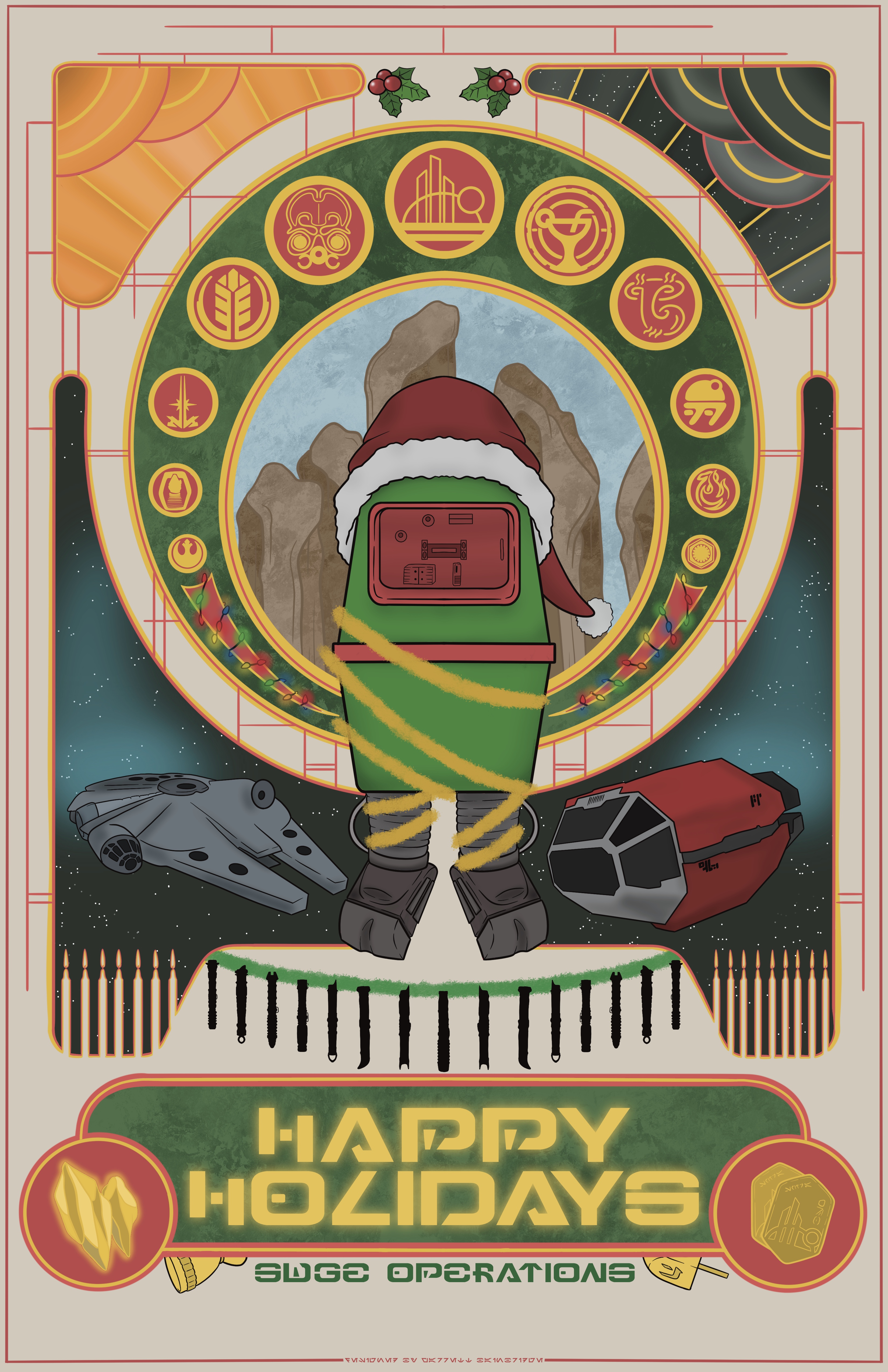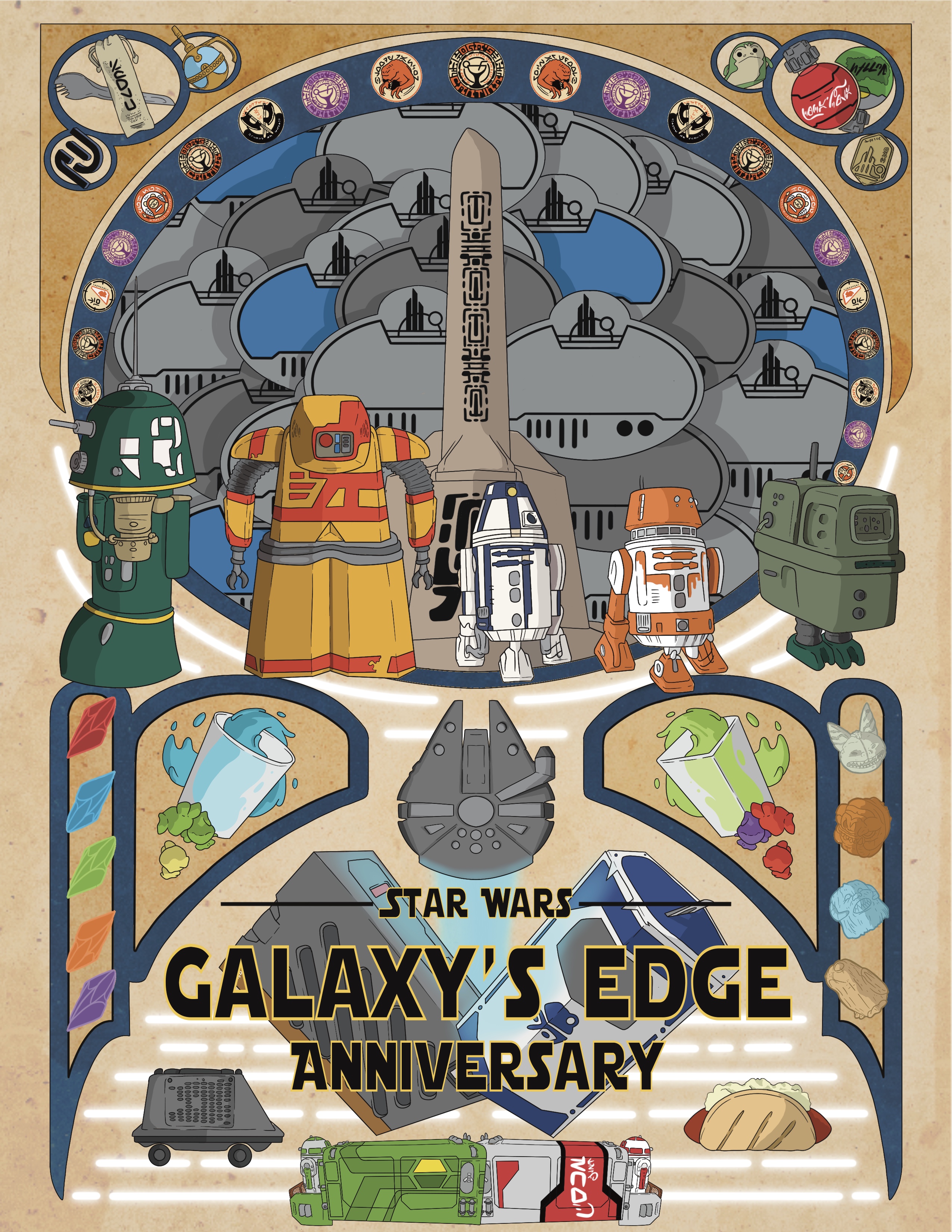 The building for the attraction Star Wars Rise of the Resistance is massive and can be very confusing for newer Cast Members. To assist them during ride evacuations I was tasked with creating directional signage. I produced these three signs and had the Cast that worked there vote on which one they liked the most. I used signage we already had around the building as insipration, as well as our name tag.